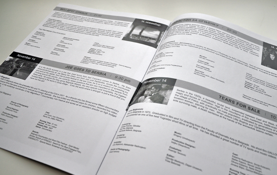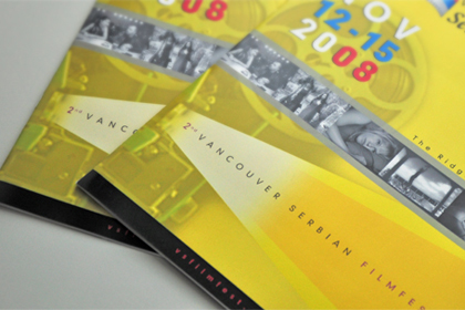 The brochure for the Serbian Film Festival in Vancouver in 2008 was accompanied by a promotional package of brochures, posters, flyers and business cards.