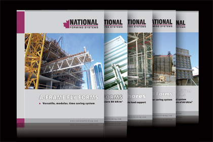 Brochures for National Forming Systems Inc. products. Information and specifications for each National Forming Systems Inc. product was presented in separately printed editions. Dozens of these product brochures were combined in presentation binders.